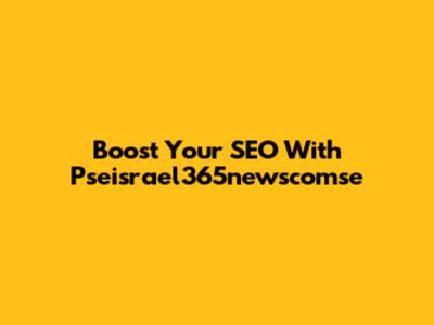 Boost Your SEO With Pseisrael365newscomse