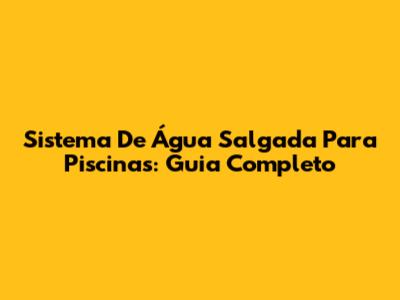 Sistema De Água Salgada Para Piscinas: Guia Completo