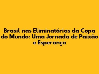 A trajetória do Brasil nas eliminatórias da Copa do Mundo é uma história de paixão, emoção e superação. A cada ciclo, a seleção brasileira busca honrar sua tradição, superar os desafios e garantir a vaga no maior palco do futebol mundial. Com craques em campo, táticas bem definidas e o apoio incondicional da torcida, o Brasil segue em frente, rumo à Copa do Mundo, em busca de mais um título e de mais um capítulo glorioso em sua história.