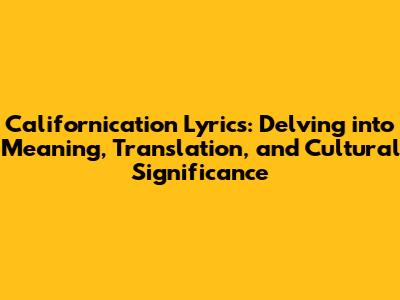 Hey guys! Ever found yourself humming along to a tune, totally digging the vibe, but scratching your head about what the heck the lyrics actually mean? Well, you're not alone! Today, we're diving deep into the Californication lyrics, a total classic from the Red Hot Chili Peppers. We'll be breaking down the song's meaning, exploring its translation, and checking out its lasting impact on the culture. Get ready to have your mind blown (or at least, your perspective shifted) because this song is way more than just a catchy guitar riff and Anthony Kiedis's signature vocals!
