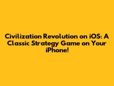 Civilization Revolution on iOS was a landmark title that brought the thrill of empire-building to mobile devices. Its intuitive controls, engaging gameplay, and strategic depth made it a hit among strategy game fans. While the original game may not be readily available today, its legacy lives on in the numerous strategy games that have followed in its footsteps. So, if you are looking for a captivating strategy experience on your iPhone or iPad, be sure to explore the many Civilization-like games available on the iOS App Store. You might just discover your next favorite mobile game! Remember the days of conquering the world from your couch? Now you can relive the glory with these modern mobile strategy games. Who knows, maybe you'll start a real-life revolution too (just kidding... mostly!). The impact of Civilization Revolution is undeniable, and its influence will be felt for years to come. So, raise a glass to the game that brought empire-building to the palm of your hand, and get ready to conquer the world all over again!