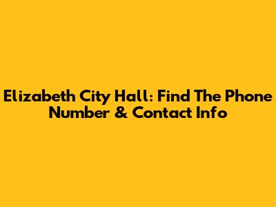 Elizabeth City Hall: Find The Phone Number & Contact Info