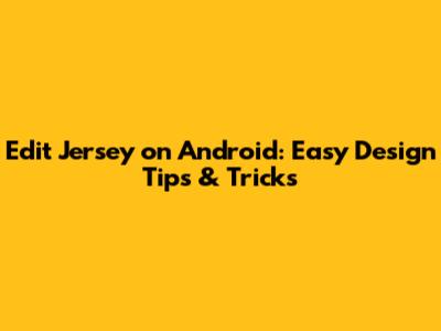 Edit Jersey On Android: Easy Design Tips & Tricks