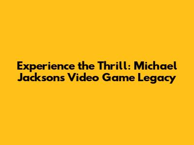 Experience The Thrill: Michael Jackson's Video Game Legacy