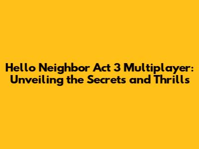 Hey there, gamers! Ready to dive back into the wonderfully creepy world of Hello Neighbor? Specifically, are you hyped about Hello Neighbor Act 3 Multiplayer? It's the talk of the town, and for good reason! This game has grabbed the attention of gamers of all ages. This guide is your ultimate companion to all things multiplayer in Act 3. We'll explore everything from the gameplay mechanics to uncovering hidden secrets and offering pro tips. Get ready to sneak around, solve puzzles, and maybe even outsmart your friends in this thrilling, suspense-filled experience. So, buckle up, because we're about to explore the heart of Hello Neighbor Act 3 Multiplayer!