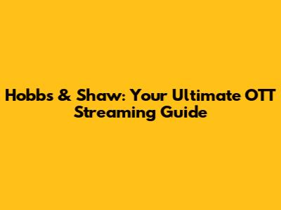 Hobbs & Shaw: Your Ultimate OTT Streaming Guide
