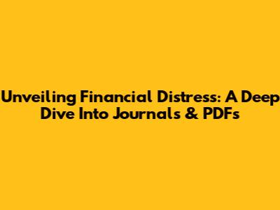 Unveiling Financial Distress: A Deep Dive Into Journals & PDFs