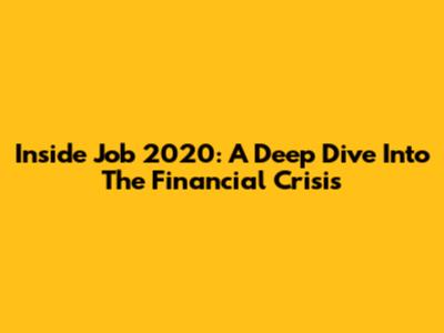 Inside Job 2020: A Deep Dive Into The Financial Crisis