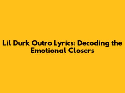 Lil Durk Outro Lyrics: Decoding The Emotional Closers