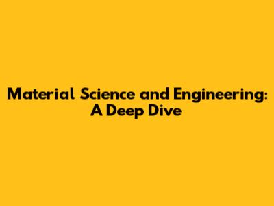 Material Science And Engineering: A Comprehensive Guide