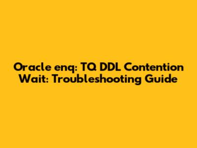 Oracle Enq: TQ DDL Contention Wait: Troubleshooting Guide