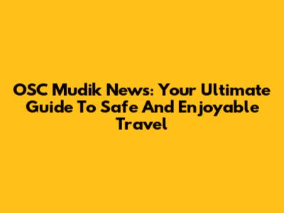 OSC Mudik News: Your Ultimate Guide To Safe And Enjoyable Travel
