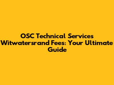 OSC Technical Services Witwatersrand Fees: A Comprehensive Guide