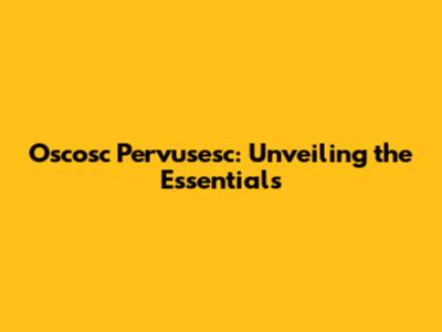 Oscosc Pervusesc: What You Need To Know