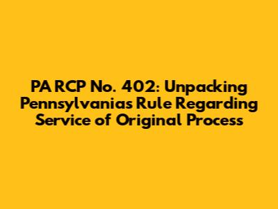 Hey guys! Ever stumbled upon a legal term that sounds like it's straight out of a sci-fi movie? Well, PA RCP No. 402 might just be one of those! But don't worry, we're here to break it down in a way that's easy to understand. This rule is super important in Pennsylvania's legal system because it deals with how a lawsuit officially begins – specifically, how the initial paperwork (the original process) is delivered to the person or company being sued. Think of it as the formal 'You've been served!' moment. Without proper service, the whole case could be in jeopardy, so getting this right is crucial.