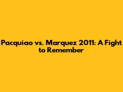 Pacquiao Vs. Marquez 2011: A Fight To Remember