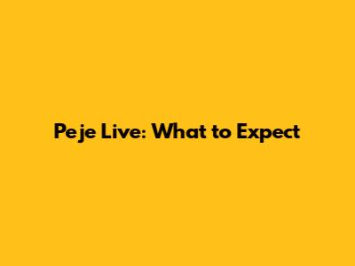 Peje Live: What To Expect