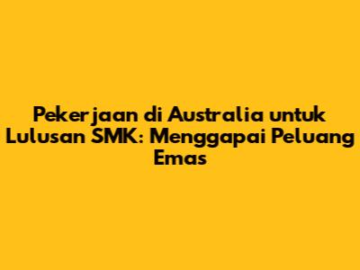 Guys, Australia, negeri Kanguru yang terkenal dengan keindahan alam dan kualitas hidupnya, ternyata menyimpan segudang peluang kerja menarik bagi lulusan Sekolah Menengah Kejuruan (SMK). Jangan salah, lulusan SMK punya kesempatan besar untuk berkarir dan meraih kesuksesan di 'Negeri Kangguru' ini. Artikel ini akan membahas secara mendalam pekerjaan di Australia untuk lulusan SMK, mulai dari jenis pekerjaan yang tersedia, persyaratan yang harus dipenuhi, hingga tips dan trik agar berhasil mendapatkan pekerjaan impian di sana. So, simak baik-baik, ya!