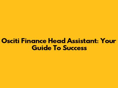 Osciti Finance Head Assistant: Your Guide To Success
