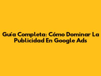 Guía Completa: Cómo Dominar La Publicidad En Google Ads
