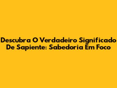 Descubra O Verdadeiro Significado De Sapiente: Sabedoria Em Foco