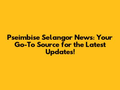 Pseimbise Selangor News: Latest Updates & Trends