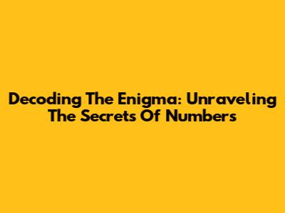Decoding The Enigma: Unraveling The Secrets Of Numbers