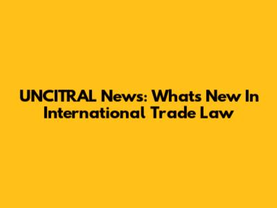 UNCITRAL News: What's New In International Trade Law