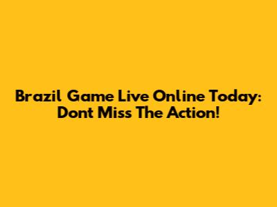 Brazil Game Live Online Today: Don't Miss The Action!
