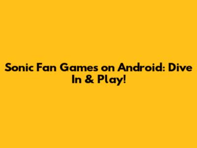 Sonic Fan Games On Android: Dive In & Play!