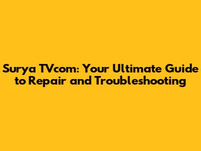 Surya TVcom: Guide To Repair & Troubleshooting