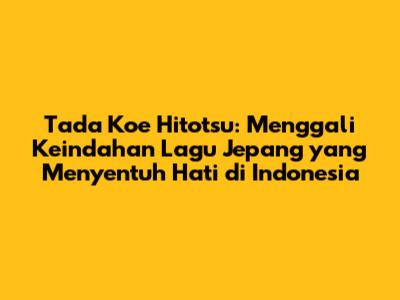 Apakah Anda baru mengenal Tada Koe Hitotsu atau sudah menjadi penggemar setia, lagu ini akan selalu memberikan pengalaman yang tak terlupakan. Jadi, teruslah mendengarkan, nikmati, dan rasakan kekuatan emosional dari Tada Koe Hitotsu.