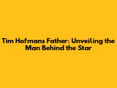 Tim Hofman's Father: Unveiling The Man Behind The Star
