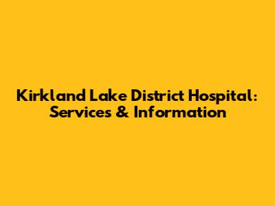 Kirkland Lake District Hospital: Services & Information
