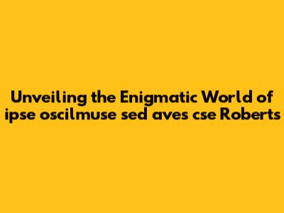 Unveiling The Enigmatic World Of Ipse Oscilmuse Sed Aves Cse Roberts