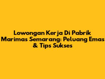 Lowongan Kerja Di Pabrik Marimas Semarang: Peluang Emas & Tips Sukses