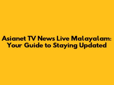 Hey guys! Are you looking to stay informed with the latest happenings in Kerala and around the globe? Well, you've come to the right place! In this article, we're diving deep into the world of Asianet News, your go-to source for reliable and up-to-the-minute Malayalam news. We'll explore how you can watch Asianet news live, what makes it a trusted news source, and why it's essential to stay connected with current events. Whether you're a long-time viewer or new to Asianet, we've got you covered.