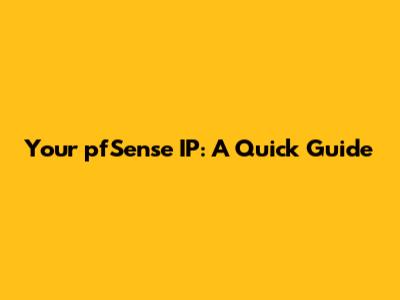 Your PfSense IP: A Quick Guide